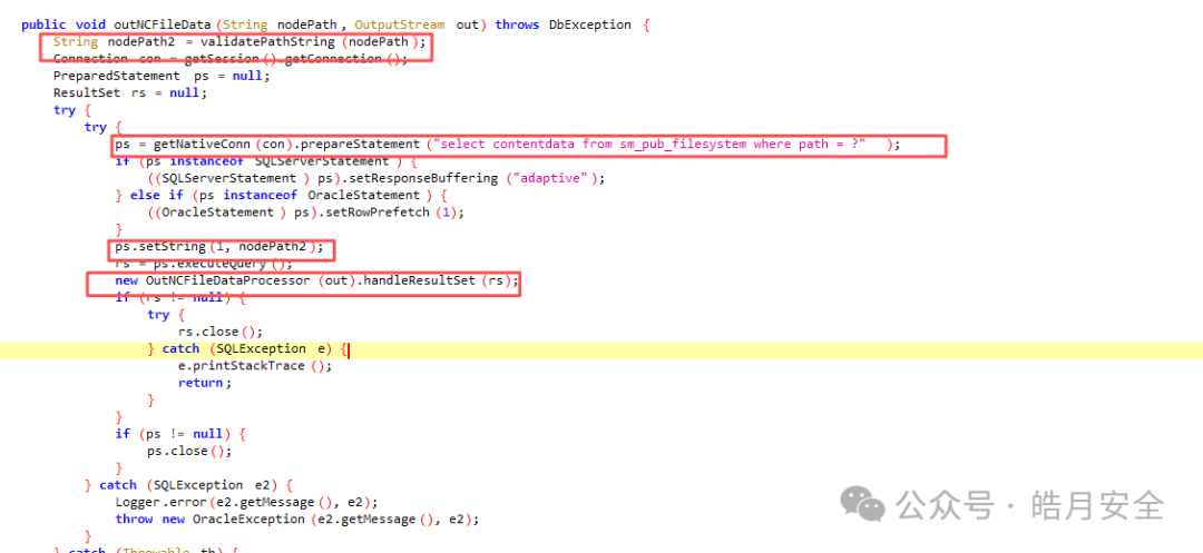 源代码如下 ![]() 获取HTTP数据包中的输入流,存入输出流in2中,然后调用readObject()方法对输出流in2进行反序列化,转换对象为一个hashmap数组headInfo,从headInfo中获取dsName和operType,当operType不为upload时,调用doDownLoadFile(headInfo, response); 跟进doDownLoadFile方法 从headInfo中获取参数path,随后初始化文件系统的操作类,调用downLoadFile方法 跟进downLoadFile方法 ![]() 根据dnName进行FileSpace初始化,虽有调用outNodeFileData方法 ![]() 跟进方法outNCFileData, ![]() 首先调用validatePathString对传入的路径nodepath进行判断,没有校验绝对路径类型和路径穿越字符 ![]() 随后直接调用ps = getNativeConn(con).prepareStatement("select contentdata from sm_pub_filesystem where path = ?"); 实现从数据库中映射路径获取读取的文件内容,并调用new OutNCFileDataProcessor(out).handleResultSet(rs); 将读取内容写入响应对象,整个过程中没有对传入的反序列化数据校验,且没有校验获取的path是否可以路径穿越以及是否通过绝对路径读取敏感文件内容 ![]() 阅读原文:https://mp.weixin.qq.com/s/4YlRUTLAD5p-fVt4_DaMgA 该文章在 2025/9/20 9:42:25 编辑过 |