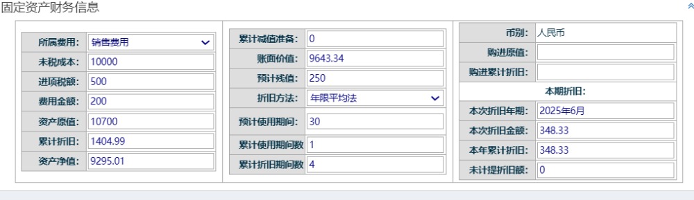 所属费用有4个选项,例如:销用费用对应科目的折旧费,制造费用对应制造费的折旧费
