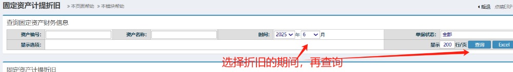 选择要折旧的期间,再点击查询按钮 如下图: