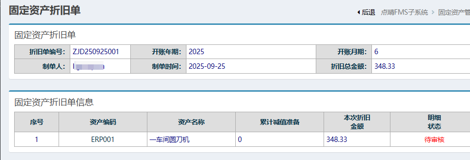 | [点晴模切ERP]点晴FMS-新增固定资产折旧单-操作流程