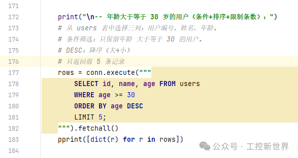 条件:只要 age >= 30 → 剩下 Bob(30)、Charlie(35)
