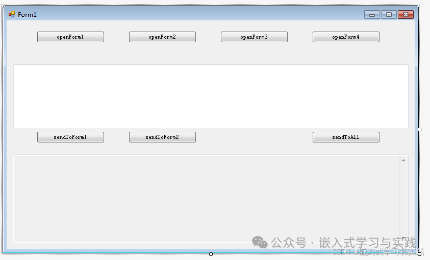 using System;using System.Collections.Generic;using System.ComponentModel;using System.Data;using System.Drawing;using System.Linq;using System.Text;using System.Threading.Tasks;using System.Windows.Forms;namespace MultiWindowCommunication.Forms{ public partial class ChildForm2 : Form { public event EventHandler<string> SendMessageToMain; public ChildForm2() { InitializeComponent(); } public void ReceiveMessage(string message) { txtReceived.Text = $"收到主窗口消息: {message}"; } private void btnSendToMain_Click(object sender, EventArgs e) { if (!string.IsNullOrEmpty(txtMessage.Text)) { SendMessageToMain?.Invoke(this, txtMessage.Text); txtMessage.Clear(); } } }}