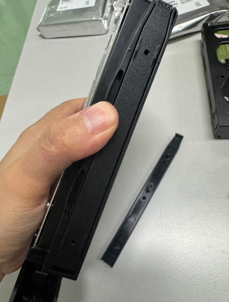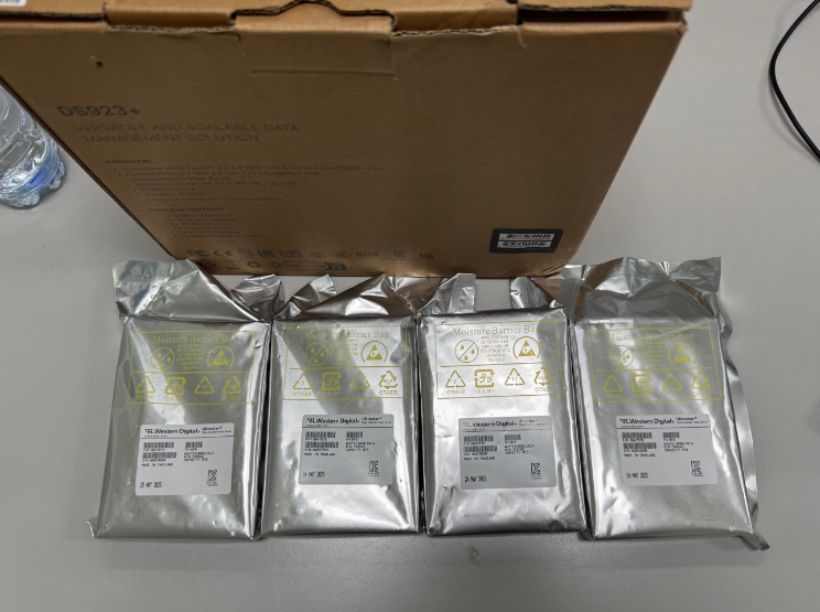 客户一个DS224+,外加4个8T WD企业硬盘。可以看到这是WD的企业硬盘,这个硬盘是泰国生产的,我觉得泰国的生产工艺不太行,虽说是全新未拆的,但是拆开后硬盘表面上还是有很多划痕。工艺的确不能和我们比。然后再把硬盘支架的卡条安装回去,固定好硬盘就可以了。这时要确定一下,硬盘如何安装到NAS服务器的硬盘架子中。我们要确定好,硬盘的接口位置。NAS中的硬盘接口在下面,所以我们安装硬盘,也需要将硬盘的接口位置往下安装进去,还需要确定一下,正反,如果反了,是不好直接插进去的。硬盘安装完成之后,我们就需要为这NAS安装操作系统了。首先我们需要到官方下载安装系统软件。