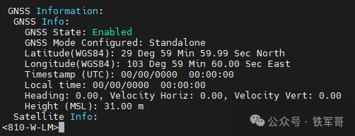 可以看到,卫星信号全部丢失,但是显示的经纬度和高度还是之前一样,难道这个值是初始配置?