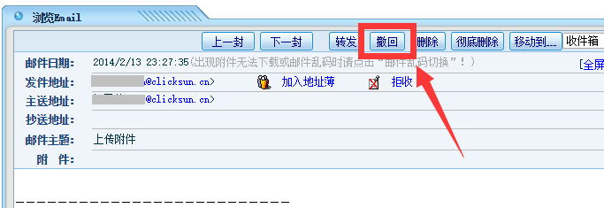 点晴OA中发出去的内部Email有撤回功能,只要对方还没有查看,就可以撤回(删除),如果查看过了就不允许撤回了,发送到外部的Email则无此功能。