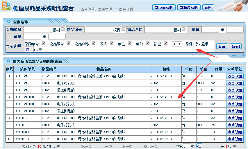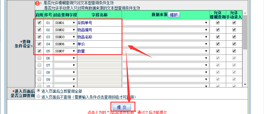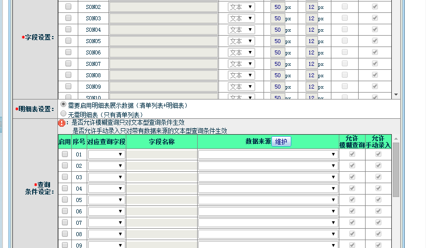 5、设置表头显示的文字内容;如下图所示: 6、设置查询条件;如下图所示: